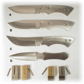 | Wolf (B) Clip point skinner, 8 1/2" overall, 1/8" thick, use 1/4" handle pins and 1/8" bolster pin | ||||