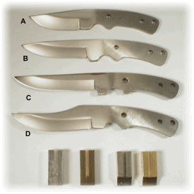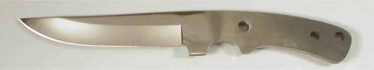 Piranha (A) Popular 7 5/8" hunter with 3 1/4" blade, 5/32" thick, 1/4" handle and thong holes | ||||