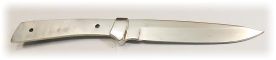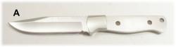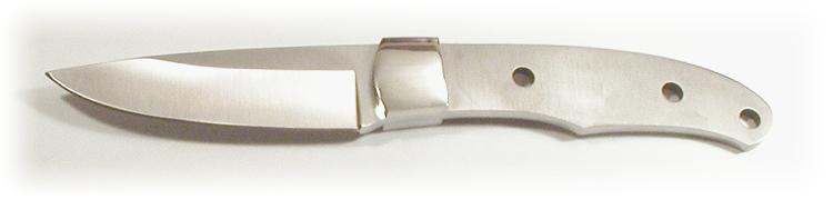Blades with Pre-Attached Bolsters Beautiful hard working blades of 440C steel with the nickel silver bolsters ( or brass in the case of the Abalone 2) already attached to simplify your work. All are hollow ground . The Sentry is a classic design while the Scout is an elegant and efficient modern one. The Centurion sports an aggressive but very useful design, comes withmounted stainless guard. The Abalone 4 is a slim, lightweight Every Day Carry design that will serve the camper or hiker well. The Venator is a serious heavy duty knife with a blade that is almost 5" long and is a hefty 3/16" thick |