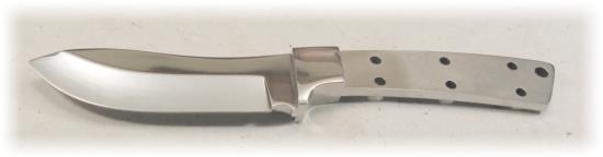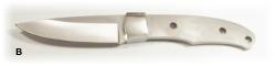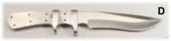 | Scout (B): 8" overall with a 3 3/8" blade, .145" thick, pin holes drilled for 1/4" pins and a 1/4" thong hole. Satin finish | ||||