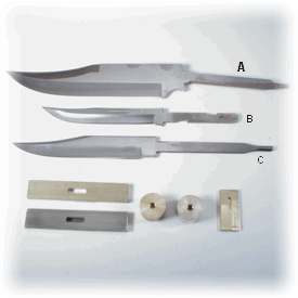 | Notes: None of the above knives require a guard or bolster making these some of the easiest to assemble of any of the knives we carry. The Ferret makes an excellent, lightweight backpacking knife. The Bear Claw with it's unique handle shape, locks into your hand and becomes an extension of your arm. The Adder is the smallest knife we carry and, when fitted with a Kydex sheath slightly larger than a credit card, can be easily carried in your pocket. The Tomcat is the perfect lightweight carry but hardworking and functional sportsman's knife. Sleek and slim, the Tomcat features a very useful gut hook. | ||||