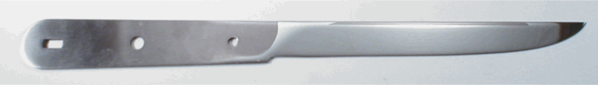 | Trout Fillet Knife (B) 10 1/2" overall, 5 3/4" blade, .045" thick ( very flexible! ) , use 3/16" and 1/8" pin holes | ||||
