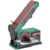| For the cost of a good portable belt sander, you can own this quality combo bench sander. A 4" x 36" quick change belt and a 6" disk will make this one of your most often used tools. 1/3 HP 110V motor, cast iron base, single knob tracking and a 2 1/2" dust port. Platen rotates 90 degrees for flexibility. Not a lightweight toy, this quality machine has a shipping weight of 38 pounds. | ||||||