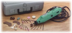| If you want to know the truth, I still prefer my Dremel. But at half the price, this high quality, powerful multi-purpose high speed electric grinder shouldn't be overlooked. Uses standard 1/8" accessories. Also uses most Dremel accessories. Variable speed from 8000 to 30,000 RPM. 115 V. Comes in it's own plastic case with a nice assortment of the most common accessories to get you started. This is a tool that is probably one that you reach for most often, so you want to make sure you want to buy a dependable one. Grizzly won't let you down. | ||||||