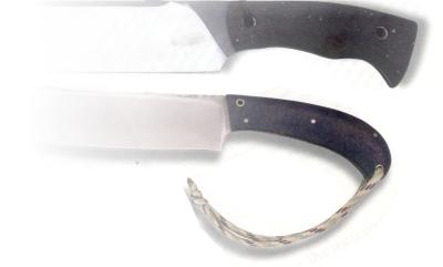 | Notes: For a rubber to metal bond ( full tang knives) use epoxy, black reinforced super glue or a polyurethane glue like Gorilla Glue. (You'll still want to use some sort of mechanical fastening also such as pins, corby or loveless bolts, etc.) For a rubber to rubber bond ( if you're gluing two pieces up for a partial tang knife) use a good, industrial strength contact cement. Want to see some ideas? Click HERE | |||||