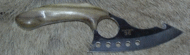 | Another beautiful creation by Keith Thrasher. The guard is from 3/8" bar brass bar stock with scallops done with a needle file. 440-C steel saber ground to a razor edge and a buffalo horn handl and brass pommel. Here's what I found to be surprising: Keith has only been making knives for 4 1/2 years! | ||
