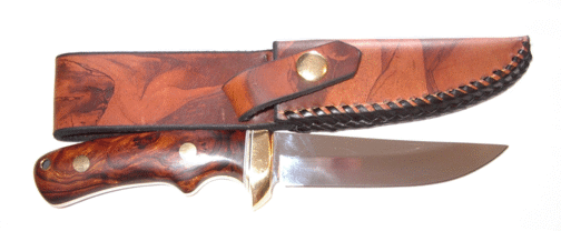 | A Darrel Ralph SG4 kit by first time knifemaker Matthew Block. Matt used Mirandiba wood for the handles and sealed it with super glue. Great job! Matt can be reached at hueymfb@justice.com | ||