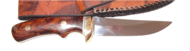 | Another work of art from Ron Ker, this time a Barracuda blade, again using ironwood scales. The beauriful sheath is made by a friiend of his, Travis Oakey. It's not uncommon for Ron to sell one of his knives for $300, and I think the buyer is getting a deal . Contact Ron at ronrek@msn.com | ||