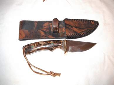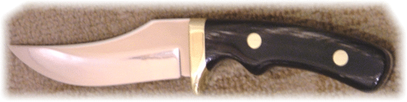 | Beautiful Lion Skinner by knifemaker Gary Silvers sports horn handles, corby rivets and brass guard. If I understand correctly, this knife is going to be raffled off for the hometown Park and Rec Department fundraiser. I wouldn't mind buying a ticket. Gary is gwsilvers@netzero.net | ||