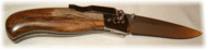 | Ron Ker doesn't limit himself to fixed blade knives. Get a load of this gorgeous Darrel Ralph DDR1 kit. Not sure, but I'm going to guess that's walnut for scales. Solid wood spine adds a nice touch. | ||