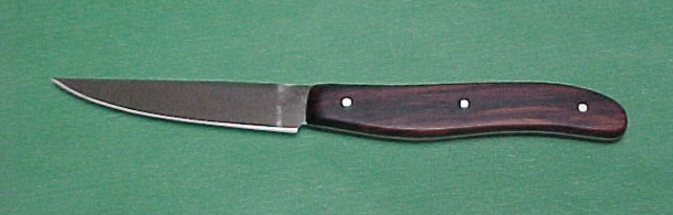 First time knifemaker Cynara McDonald did this beautiful Paring Blade with cocobolo handles. Wow, do you know what my first knife looked like? Cynara can be reached at a5foil@ix.netcom.com |