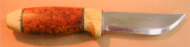 Knifemaker Ruud Overmeer from the Netherlands sent along this picture of his superb Puukko blade made with a thuya burl and ebony handle. Believe it or not, this is is Ruud's first knife. Wow. Ruud is at : ruudo@planet.nl | |