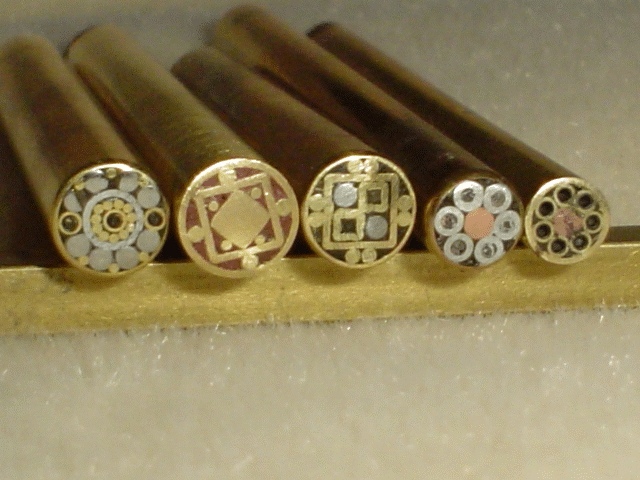 Chris Huang sent along some great pictures of the mosaic pins he made. For a filler, he used a mixture of nail polish borrowed from his wife ( from the voice of experience: ask first!) mixed with superglue.Takes a day or so to set up, but well worth it. Chris is at: cbmm@verizon.net | |