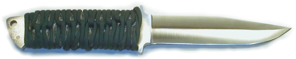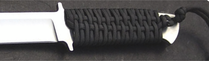 | A traditional and good looking handle treatment is the cord wrap. It's popularity with survival knives comes from the fact that it's easy to do and provides a superb, non-slip grip in all adverse environmental conditions. Cord wrap is a technique that can be adopted in a variety of ways to give you a wide range of attractive looks. Be creative: if you don't like the look, undo it and try it again. To be honest, I still prefer the look of wood scales, but I guarantee that once you wrap your hand around a cord grip, you'll never be satisfied with the feel of anything else. | ||