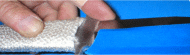 This is what it looks like after being trimmed. I probably should have told you to place some tape on the sharp edge during this wrap process. Did you notice the band aid? Yes, the purpose of these tutorials is to learn from my experience. | |