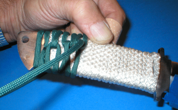 | OK, now that you've seen my meager attempt at explaining how to cord wrap a handle, I found this nice video on YouTube explaining how it's really done. Part 1Click HERE , Part 2 (Basketweave) click HERE | ||
