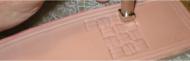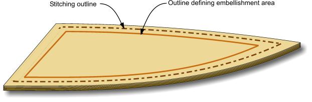 This is common to all of the treatments below: establishing a stitching outline and an inner outline for embellishment. The stitching outline is recessed so the stitching will sit flush with the surface. | |