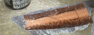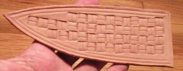 To accentuate the texture I used common brown shoe polish and made sure I rubbed enough in to add more color to the embossed recesses. Not too shabby, I like it. It's a keeper. | |
