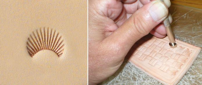 Stamped Embossing For this technique, you're going to need two leather embossing stamps, a basket weave and camouflage. |