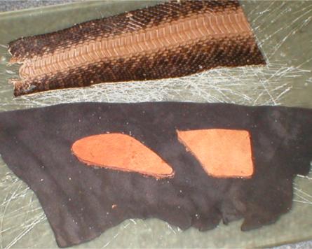 Inlay I'm using a nice little piece of snake skin here but you could use a nice thin piece of naugahide, contrasting leather, or any other number of materials. |