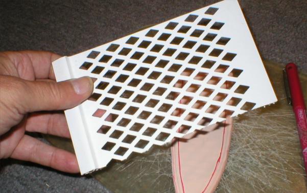 For the pattern, I'm going to use a small piece of gutter guard. Two bucks will get you a three foot piece and there are several patterns available in plastic or metal. | |