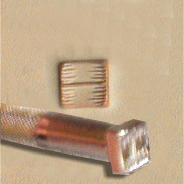 This is called a camouflage stamp. Great name. Available in a wide variety of patterns and sizes. We're going to use this to run around the edge of the inside outline to fill in those areas where we couldn't get the basketweave stamp. | |