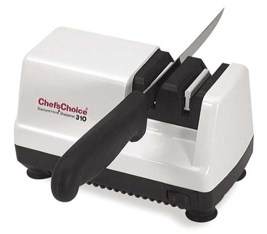 Chef's Choice sharpeners have long been popular for their ease of use and results. I'll admit they do a pretty respectable job and do it quickly, but it's not going to be the kind of edge that shaves the hair off your arms. There are basically two flavors: two or three various grit small internal grinding wheels. I like the fact that the guides hold your blade at the right angle. I did manage to find a video on proper use of the Chef's Choice also, click HERE | |