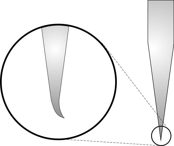 I use a sharpening steel all the time but keep in mind that it doesn't really sharpen. The very fine edge often gets bent slightly under use (exaggerated in the drawing) , even if it's too small to see it. Imagine trying to cut with an edge like this. The sharpening steel straightens the edge, returning it to true. I also found a little video on the proper use of the steel. Click HERE | |