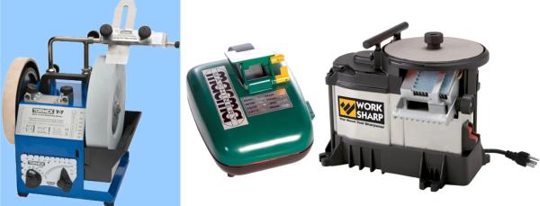 There are a few other machines you might want to look at. These are basically slow speed grinders ( 70 to 400 rpm) using fine wheels. Several keep the wheel wet to avoid building up heat. I like them but would primarily use them for scissors or chisels. | |