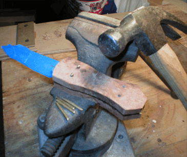 Add the pins of 3/32" brass rod and peen lightly. Don't overdue this and