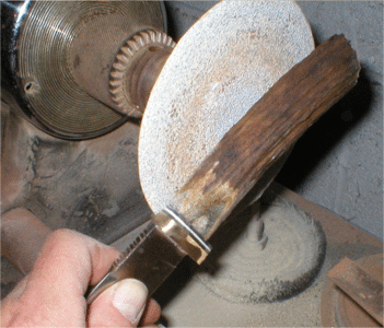 I used a flexible disk sander to shape the horn and guard. Be careful and attentive, go slow and stop and check often. | |