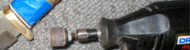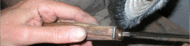 I do the final shaping of the guard with a small sanding drum in a Dremel. The tape on the handle protects the horn to keep you from nicking it. | |