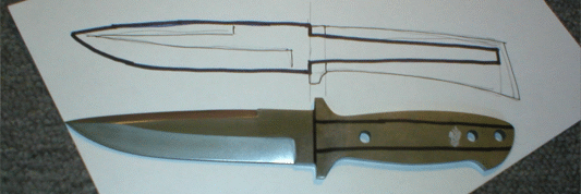 Start by sketching out you design on paper. You can experiment easier on paper to decide the final design that you want to end up with. When satisfied, transfer this to the handle with magic marker. | |