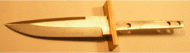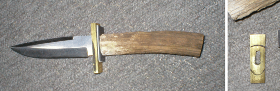 This design started out as the Commando blade, a long time favorite of mine, and as much as I love the blade, I've gotten tired of the parachute design handle. I wanted a little bit more freedom of design . I also wanted to try out a nice little piece of horn I picked up for the handle. To do this, I decided that I would need to convert this to a hidden tang profile | |