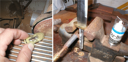 Shape the guard to final profile ( I used a bench disk sander) and solder the guard in place. It might not be a bad idea to review the Soldering Tutorial | |