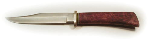 | Here's the classic bowie, updated for today in a sleeker, cleaner and more functional styling. Still a hardworking camp or hunting knife, this design goes back to the basics of function, form and design. Techniques shown can be used with all hidden tang blades. | ||