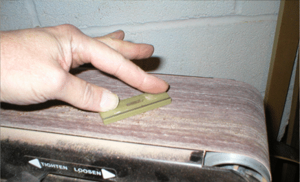 Sand the front and back of the guard to a perfectly flat finish since it's easier to do it now than after it's mounted. When done on the belt sander, hand sand with 600 grit sandpaper or spend a few minutes on the buffer . | |