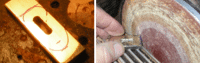 I used a Dremel with a carbide rasp and the routing head attachment to route the space in the handle where the tang will fit. Final touch up with a 1/4" chisel. Test fit and when you're satisfied, use a good carpenter's glue to put the blocks back together. Clamps recommended. | |