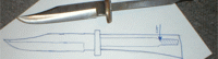 Laying your design out on paper will help you visualize what you want to end up with. Hmmm. Looks like I'll have to cut the tang down just a bit to fit the handle I want to put on this knife. | |
