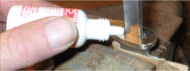 Keep replacing the water as it cools off to keep raising the temperature of the wood hardener almost to the point of the boiling water. You are also opening up the pores of the wood. I put a very small hole in the base of the coffee can to allow the hot water to gradually drain as it cools. | |