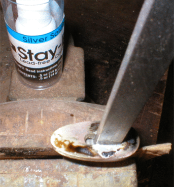 Soldering OK, I've held off on doing this tutorial long enough, mainly since I'm such a poor solderer. It's really not that tough to do. I think a lot of people just have a mental block against it. Soldering is for both strength and looks and makes your creation look extremely professional. I tried a number of hardware store solders and kept getting frustrated. Once you try this Stay Brite stuff you'll never try anything else. It flows at a low 430 degrees but is a lot stronger than regular silver solder. |