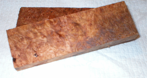 | Notes: This works great for 3/8" thick scales and the wood hardener soaks all the way through. I haven't tried this process with blocks yet, but I'm going to assume that it's best if you do some preshaping first to get the block close to a final shape before you do this. This also works best with softer woods ( like redwood ) and open pore woods ( just about any burl ). Some heavy and dense woods ( like cocobolo or ironwood ) won't work well, but they really didn't need to be stablized in the first place. | ||