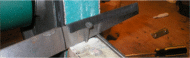 of flat stock steel to be ground. Picture shows how the stop bumps up against