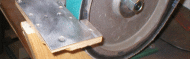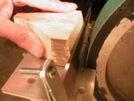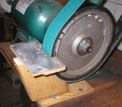 grinding belt using the push stick to hold it tight to the belt.
